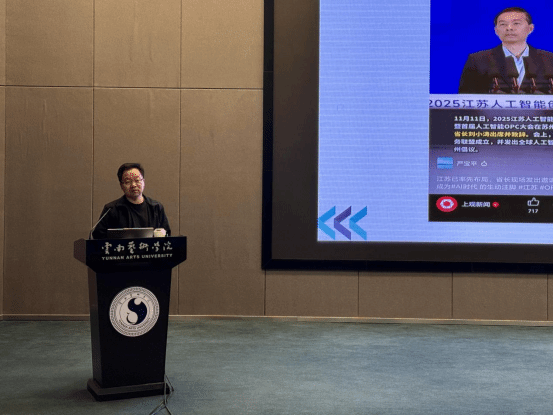 为探索 AI 时代艺术教育的创新路径,12 月 2 日,云南艺术学院研究生处(学科建设办公室)特邀南京艺术学院严宝平副教授,在图书馆报告厅、行政楼 231 分两场开展 “数智赋能・艺境新构:艺术人才培养的范式创新与实践路径” 专题讲座,近 200 名师生分场次参与交流。讲座由研究生处罗宇佳处长主持。