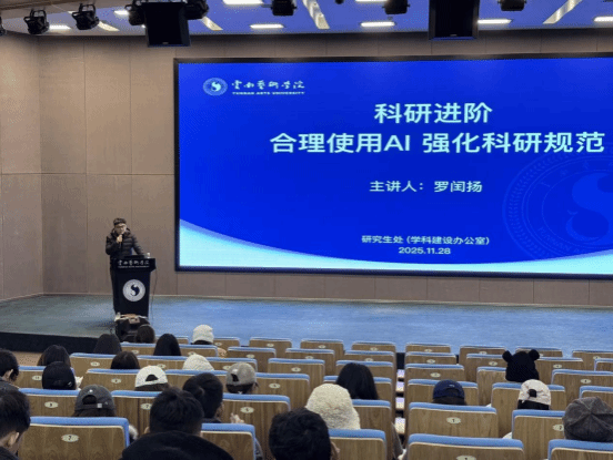 本次讲座及分享交流会是云南艺术学院研究生处主办的 “研究生工作坊” 的系列学术活动之一,旨在推动 AI 与科研工作的合规融合,为师生科研能力提升搭建实用交流平台,也是研究生处助力师生科研能力提升的系列活动之一,后续还将围绕着AI与艺术主题开展更多实用分享。